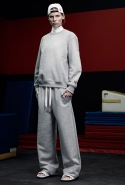 Все вещи, кажется, чуть большего размера, чем нужно. Края широких штанин, разрезанных по бокам, стелются по полу, а огромные тренировочные брюки-трубы и толстовки с капюшонами, кажется, только-только сняты с плеч какого-то рэпера угрожающе крупной комплекции. Появляется здесь и подобие боксерской униформы — все с теми же шортами в паре с леггинсами и плащами-халатами.