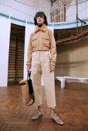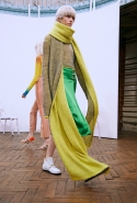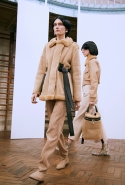 Даже те образы, которые сначала кажутся более консервативными, — может быть, почти воплощением родительской фигуры, против которой бунтуют остальные, — если присмотреться, оказываются не так просты. Хотя бежевый цвет обманет кого угодно, вся эта часть коллекции словно перешита на новый лад из старых дедовских пиджаков.