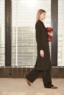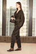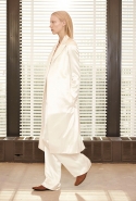 Вчерашний показ прошел на 35-м этаже небоскреба Сигрем-билдинг, возведенного по проекту архитектора Людвига Мис ван дер Роэ, и выбор этот не случаен. По словам Мэри-Кейт Олсен, «пространство все говорит за нас». И действительно, в полностью пустом, залитом светом из огромных окон помещении минималистичные, выверенно простые вещи The Row выглядят особенно эффектно. Идеальные прямые линии и лаконичные силуэты, лишенные хоть сколько-нибудь рассеивающих внимание зрителя деталей, рафинированная «чистота» картинки — трудно сказать, что в доме в новом сезоне действительно сменился хозяин. Сохранилось и легкое увлечение восточными культурами, которое проходит сквозной линией практически через все коллекции The Row. Сестры и их команда по-прежнему азиатские мотивы интерпретируют исключительно по-своему, игнорируя пышность и ритуальную торжественность, а вместо этого проникаясь буддистским спокойствием.