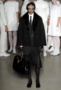Том Браун — не только дизайнер, славящийся особым вниманием к деталям, но и превосходный рассказчик. И для того, чтобы поведать зрителям во всех красках очередную мрачную, но страшно романтичную историю, ему достаточно только одного цвета — черного. В отличие от total black в коллекции Александра Ванга, представленной чуть раньше, в исполнении Брауна этот ход вряд ли можно назвать таким же насквозь коммерческим. Столь же чудаковатым, но исключительно искренним романтиком был раньше, пожалуй, режиссер, чьи инициалы точь-в-точь совпадают с брауновскими — Тим Бертон. Но если его новые сказки уже превратились в глянцевый фарс, то в работах Брауна по-прежнему чувствуются и та же мрачная красота, и настоящий талант.