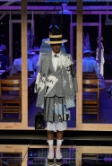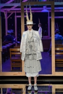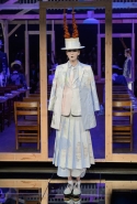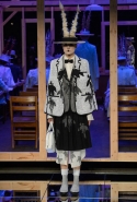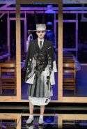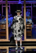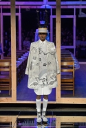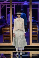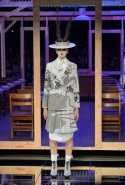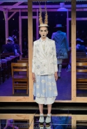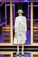 Как только речь заходит о деконструкции униформы, неизбежно заходит разговор и о том, как униформа отнимает у человека, ее надевающего, индивидуальность — а дизайнеры, переосмысляя идею, ее возвращают. Однако в случае этой коллекции Тома Брауна различия между всеми его моделями стоит искать скорее в деталях: очевидной борьбы с идеей униформы, как Шейн Оливер из Hood by Air, он не ведет, а скорее просто использует узнаваемые предметы и силуэты для того, чтобы рассказать историю. Поэтому в глаза разность образов не бросается. Но только до тех пор, пока не начинаешь смотреть на крой: меняются длина юбок и пиджаков, пальто и кейпов и соотношения длин всех предметов. Стандартный набор юбка / рубашка / пиджак может пополняться другими деталями и меняться. Но все их так же покрывают мотивы, позаимствованные Брауном из азиатского искусства: это и цветы, и пейзажи, и даже портреты гейш.