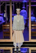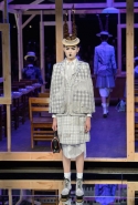 Чтобы никто, даже самые недогадливые зрители, ничего не перепутал и понял, что перед ним именно школа, Том Браун разыграл на подиуме целое представление. И, конечно, построил соответствующие декорации. Пока Томми Хилфигер возводил у себя чудо-остров и прибрежный бар, команда Брауна строила школьный кабинет — за деревянные классные парты и расселись все модели, принимавшие участие в шоу. К доске — то есть к публике — выходили строго по одному. Но школа все равно производила двоякое впечатление: хотя ни один из учеников не нарушал правила школьной формы, все они выглядели несколько странно. Скорее всего, из-за макияжа. Он, с одной стороны, напоминал японский грим (тогда, вероятно, таким образом дизайнер в очередной раз обыгрывал стереотип об опасных японских школьницах), а с другой — придавал всем носителям нечто демоническое. Что в сочетании с пастельными тонами и ретросилуэтами самой одежды впечатление производило еще более жуткое. Ведь мы, в конце концов, ничего не знаем об этих людях.