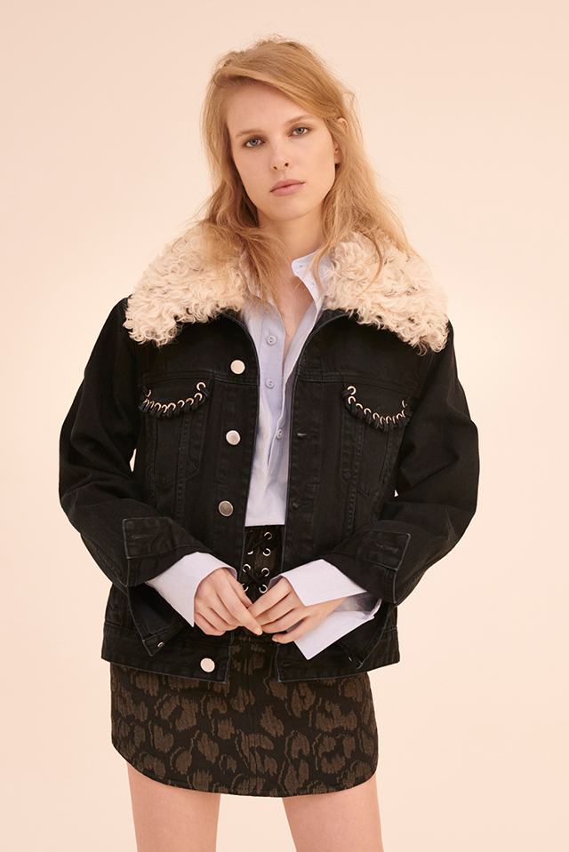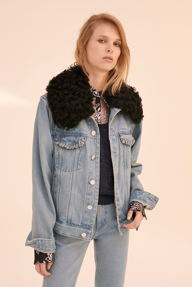 На контрасте с ними выступает верхняя одежда — вся, как на подбор, непременно oversized, нарочито фактурная и грубоватая. У джинсовых курток кроме мощных плеч и отделки из цепочек обязательно есть еще пышные воротники из овчины, ею же обшиты и огромные лесничьи дубленки, и нежно-голубые куртки.
