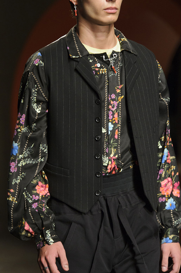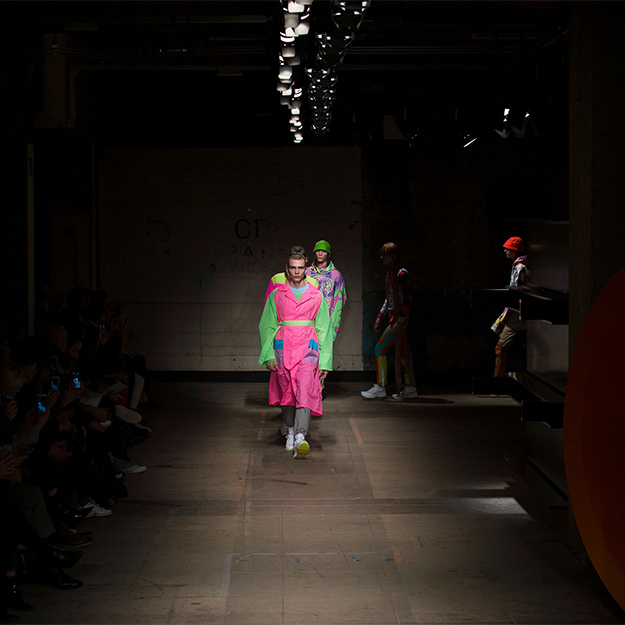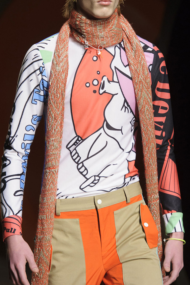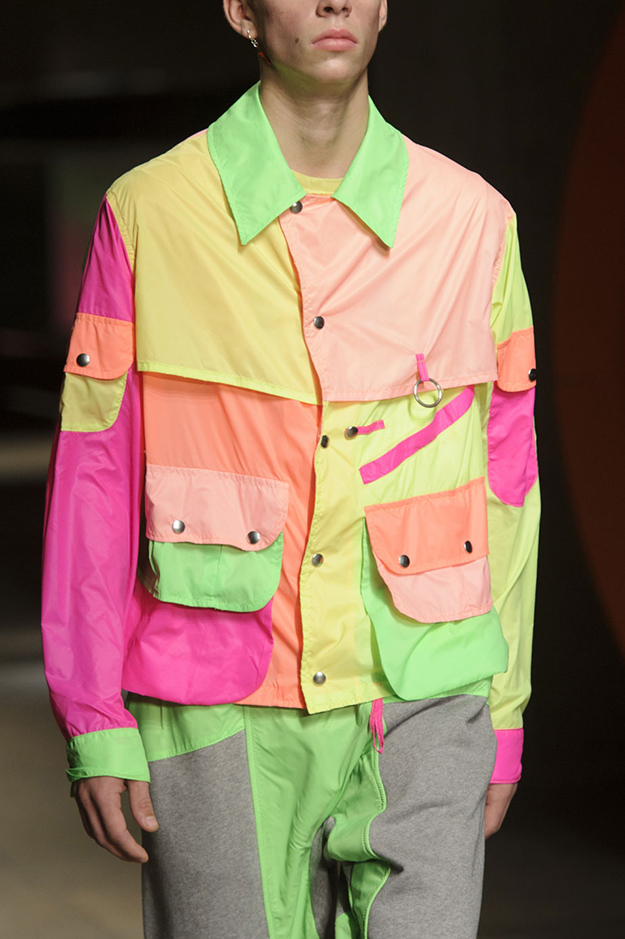 Гордон Ричардсон попытался уместить в новую коллекцию сразу все идеи, которые крутились у него в голове: получилась психоделичная униформа для портовых рабочих, которые коротают выходные на рейвах в стиле 90-х.