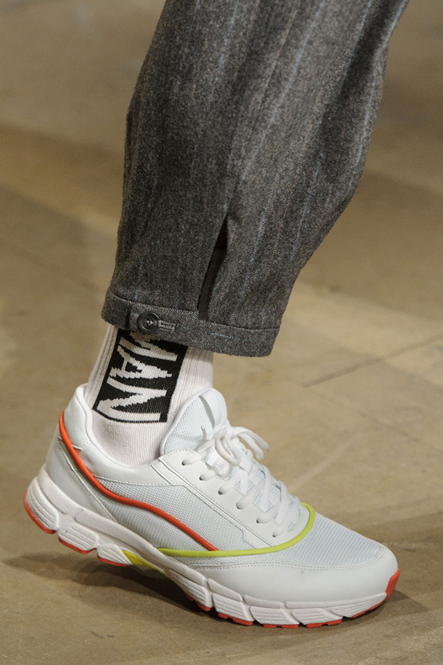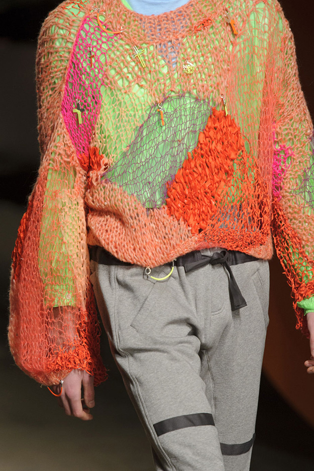 Основные элементы: утилитарная одежда шотландского парня из глубинки и полиэстеровые комплекты для уик-энда под электронику. Монохромные свитера и широкие джинсы в будни, кислотный дождевик на выходные