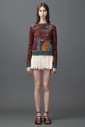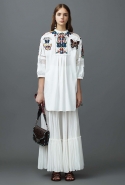 Дизайнеры Valentino, как, кстати, и бессменный глава Chanel, славятся своей страстью к размаху. И коллекции выпускают такие большие, словно соревнуются по количеству выходов с Карлом Лагерфельдом. В этом круизе, например, 80 образов — так что клиентам итальянского дома точно не придется грустить из-за того, что бутики их любимой марки пустуют. При этом каких-то радикально кубинских, то есть в оборках и красках, здесь не найти ни одного. Скорее дизайнеров, по признанию самой Кьюри, побывавшей на Кубе несколько лет назад, интересует ностальгический момент: время на Острове свободы, как она говорит, остановилось, и это поражает любого, кто сюда приезжает. Поэтому здесь смешались и платья силуэтов, популярных в 50-х, и большие джинсовки, выловленные у туристов, и хиппи 60-х в радужных разводов, и элементы национальных костюмов — не всегда кубинских, а в целом не европейских.