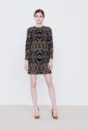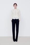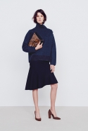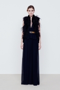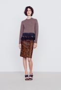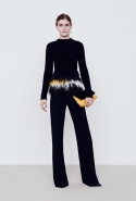 В дневной части — в большинстве простые, но очень изысканные вещи: свитера и брюки, узорчатые «ковровые» кардиганы, мягкие пальто и юбки разной длины и фасонов в теплой цветовой гамме, разбавленной черным. Бруно явно нравится силуэт «песочные часы», но в ее интерпретации он имеет мало общего с обтягивающими платьями и прочими упорно ассоциирующимися с фигурой такого типа атрибутами. А ночью в жизнь этой девушки врываются краски, перья и мини-платья. «Врываются», впрочем, для их появления слово совсем не подходящее — и в этой части (несомненно, более нарядной) коллекция сохраняет свою расслабленную, совершенно естественную элегантность.
