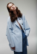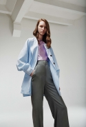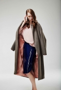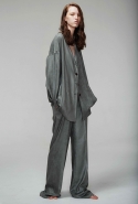 Впрочем, вещи и сами по себе, без раскрытия бэкграунда, в своей лаконичности невероятно хороши. Серый пижамный костюм из приятной на вид (уверены, и на ощупь) ткани, похожей по тону и, кажется, фактуре на бетонную стену, хочется примерить, даже ничего не зная о вложенных смыслах. Шершавые пальто, лаковые юбки, кожаные платья и топы, похожие на часть боевых доспехов, свободные брюки и блузы — тоже.