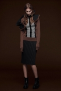 Марафон межсезонных коллекций продолжился лукбуком pre-fall подхватившей эстафету американки Веры Ванг. Немного провокационная концепция, разумеется, в духе любимого Нью-Йорка, перемешала в себе тяжеловесные и в основном черные "луки" с довольно кокетливыми образами. Изящная линейка, кричащая "Fun, furry, flirty!", с широким диапазоном применения явно не предполагает салонную укладку: рефрижераторные пальто с гигантскими карманами с оторочкой из козьего меха, кружевные вечерние блузы с шортами-бермудами, кожаные платья свободного кроя, лосины в пайетках, длинный жилет с отделкой жемчужными бусинами, по заверению Ванг, стоит носить на голое тело с громоздкими ботинками. Детской свежести 33 образам придают плиссированные мини-юбки, бомберы и свитшоты с флористическим принтом, а также шапки Санта-Клауса с рыжими меховыми краями — все-таки Рождество уже не за горами.