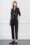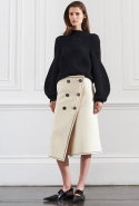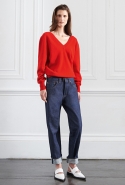 Лучше всего в лукбуке выглядят самые простые вещи. Например, ярко-синие джинсы с красным джемпером кажутся просто идеальным сочетанием и вместе выглядят так, как будто лучше их во всем свете не найти. То же впечатление производят и черные джемперы с фактурным узором из разнонаправленных полос. Бекхэм удалось найти совершенную формулу: рукава здесь плавно «вздуваются» ближе к кисти, линия горла и плеч идет мягкой волной, а передняя часть, заправленная в юбку, ложится такими же идеальными складками. Хороши и юбки, похожие на прямоугольный кусок ткани, просто небрежно обернутый вокруг бедер, и брючные костюмы, и платья, мягко обволакивающие тело, вместо того чтобы его облегать.
