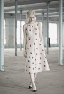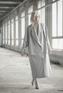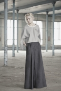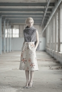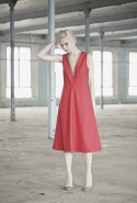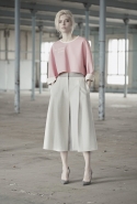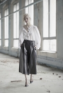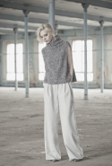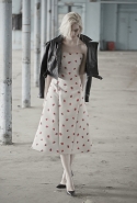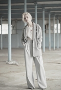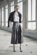 Почти все эти вещи с равной вероятностью могла бы носить и «лучшая девушка Москвы и Московской области» из советских фильмов, и независимая героиня французского кино, и просто любая девушка, томящаяся от скуки в ожидании чуда. Даже образ «бунтаря без идеала», отсылки к которому читаются в появлении курток-косух и кожаных (напоминаем: настоящие кожу и мех Вика Газинская в своих коллекциях не использует, находя им более щадящие замены) кюлотов, вполне вписывается в ассоциативный ряд: их бунт и сам давно превратился в романтическое клише. Получилась очень кинематографичной и сама коллекция: приглушенные тона, ретросилуэты, деликатно подчеркнутая женственность и простота линий придают и фотографиям из лукбука, и самим вещам особое очарование.