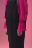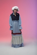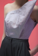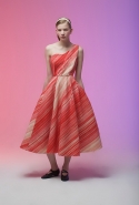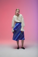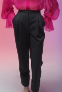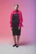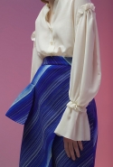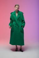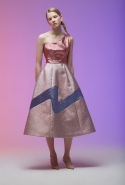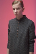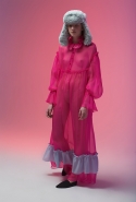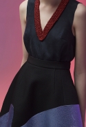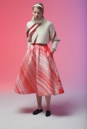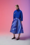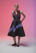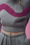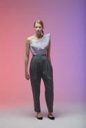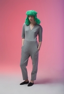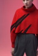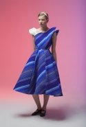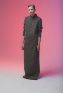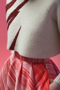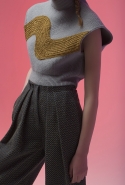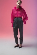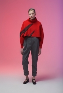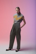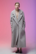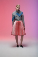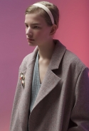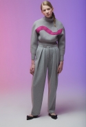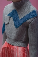 Последние две коллекции Вики Газинской вышли особенно нежными и как будто ностальгическими. В осенне-зимней, которую дизайнер представила сегодня в Париже, этот «мягкий» период получил свое продолжение. Линии здесь особенно плавные, плечи свитеров — особенно закругленные, а складки широких серых брюк — особенно мягкие. То же настроение транслирует и цветовая гамма: дизайнер, как и в коллекции F/W 2015, делает ставку на серые тона и пастель, также разбавляя их яркими красками. В прошлый раз это был только красный, а теперь к нему добавляются фуксия (не забываем: это, похоже, главный цвет сезона для расстановки акцентов), ультрамарин и зеленый. Последний появляется только однажды, полностью окрашивая единственное фактурное пальто. Именно яркие графичные акценты не дают безвозвратно потонуть в мягких складках: на груди у джемперов вспыхивают резкие красочные зигзаги-молнии, а юбки и платья с пышными гладкими юбками Газинская расчерчивает полоской. Это уже не яркие росчерки, как было в прежних коллекциях, а очень резкий и геометричный принт — в этом случае дизайнер берется не за фломастер, а в первую очередь за линейку.