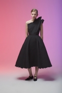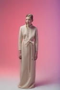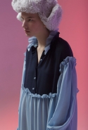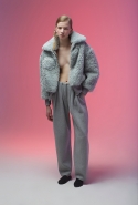 Нашлось в коллекции место и другим контрастам. Так, рядом с плотными, четко держащими форму (но при этом такими же мягкими) тканями, которые и создают это ощущение уюта, оказываются легкие и полупрозрачные. А еще — привычные плюшевые меха, — конечно, искусственные, — из которых дизайнер шьет пальто, куртки и шапки-ушанки.