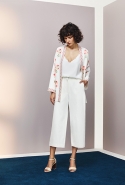 Круизные коллекции не время для одежды сложного кроя. И дизайнерам, и их клиентам хочется вещей простых и удобных, которыми можно было бы пополнить свой повседневный гардероб. Новая коллекция Vilshenko с этими задачами справляется на отлично. Российский дизайнер, вдохновляясь своим любимым десятилетием западной моды XX века, 70-ми, вновь сплетает коды того времени с русскими мотивами. Так что вещи, простые по силуэту и крою, — юбки миди, рубахи и кюлоты, длинные романтичные платья — наполняются сложным шитьем и нарядными цветочными вышивками. Ольга Вильшенко умело расставляет акценты, «сажая» яркие цветы по белому полю.