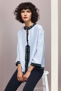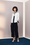 Основными тонами коллекции стали свежие и чистые краски: главная роль отведена синему и белому, а разбавляют их нежные коралловый и голубой.