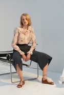По словам самой Ольги Вильшенко, на этот раз ее вдохновили работы британской художницы Линдси Карр. И именно ее эскизы легли в основу нежных принтов, которых в коллекции особенно много.