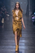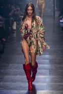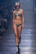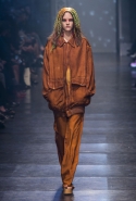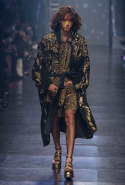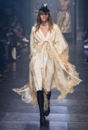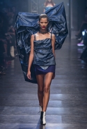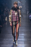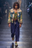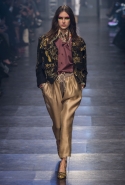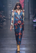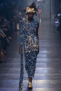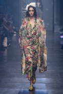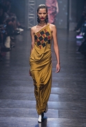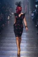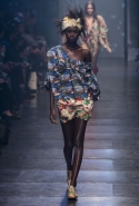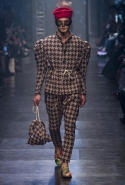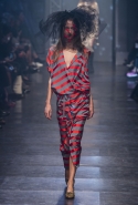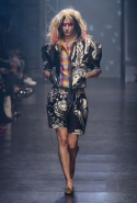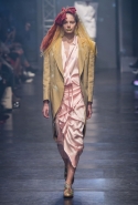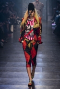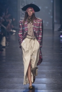 Бунтарский дух самой Вествуд на этот раз тесно переплетается с мотивами венецианского карнавала. И помимо мешковатых брюк, подвязанных шнурками, широкоплечих пиджаков, бойких платьев из ткани с разными рисунками и курток, расшитых мелкими объемными деталями, появляются здесь и трико арлекинов, и плечи-буфы, и узнаваемые узоры из ромбов.