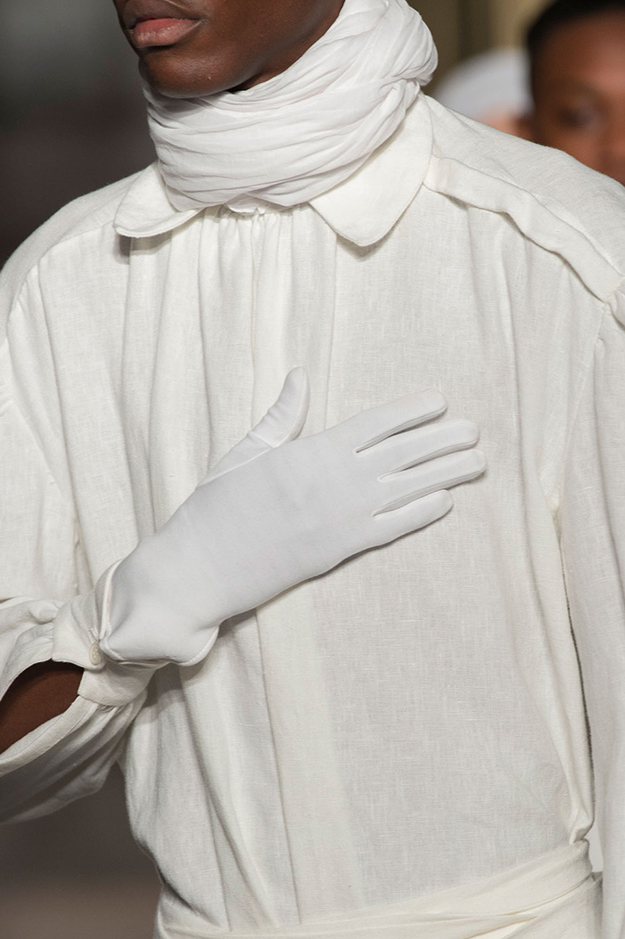 Аксессуары: белоснежные перчатки, тюрбаны и растафарианские головные уборы.