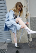 Хотя эта коллекция вышла совершенно не пляжной (в ней нет шарфов-полотенец, халатов и даже вьетнамок, как бывало раньше), думать о работе, глядя на эти кадры, просто невозможно. Наоборот, хочется сразу выйти из офиса, накинув такой же просторный «палаточный» плащ, — благо, на улице как раз стало по сравнению с прошлой неделей немного прохладнее, — и отправиться бесцельно слоняться по городу. Укрыться от любопытных глаз за большим капюшоном, спрятать руки в карманах широких брюк, покружиться на месте, чтобы ленты на рукавах тоже закружились на ветру, — и точно не думать ни о каких делах насущных.