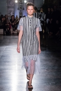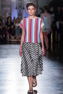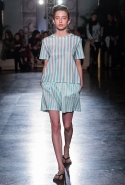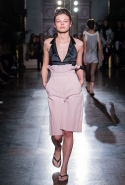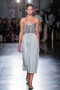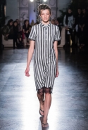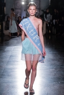 Тема морских путешествий и отпусков вполне предсказуемо стала одним из главных местных трендов российских недель мод. В вечной осени и слякоти нам жить еще долго, почти полгода, и тем приятнее смотреть на моделей, босиком или во вьетнамках гуляющих по подиумам в легких полосатых платьицах. Виктория Андреянова, Александр Терехов, а теперь и Андрей Артемов — и мы почти забываем, что на улице по-прежнему гадкий октябрь с холодом и мелким дождем. У Артемова мир, как всегда, особенный. Здесь нет капитанских мундиров или скромных девиц, ожидающих на берегу своего капитана под алыми парусами. Героини Walk of Shame свое счастье берут в собственные руки и принцев уже не ждут, а поджидают (во всеоружии!) в фойе дорогих гостиниц. В данном случае — в «Интуристе», лого которого и стало основой для сезонного логотипа марки. И пусть того странного очарования почившего московского «Интуриста» у его ялтинского тезки, несмотря на частный пляж и прочие бонусы, уже нет, история героини по-прежнему читается легко — просто реальность здесь ловко перемешивается с фантазией.