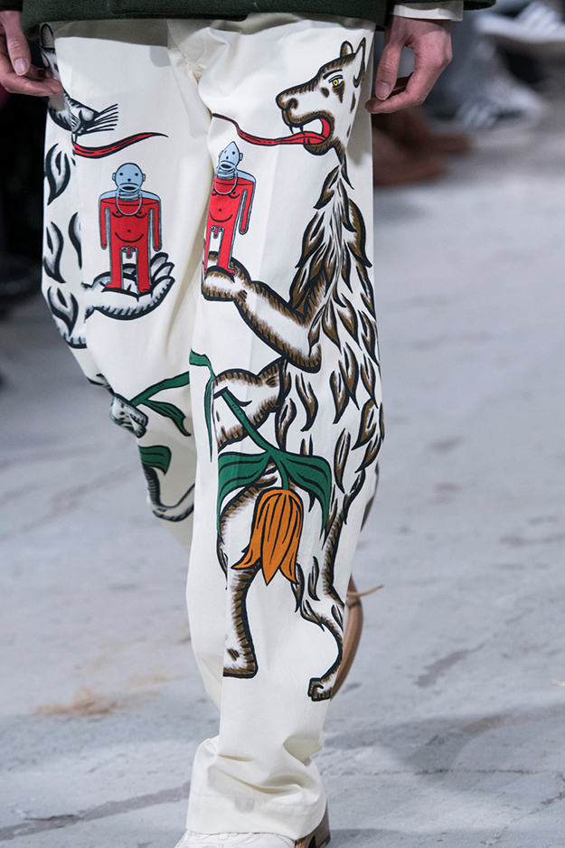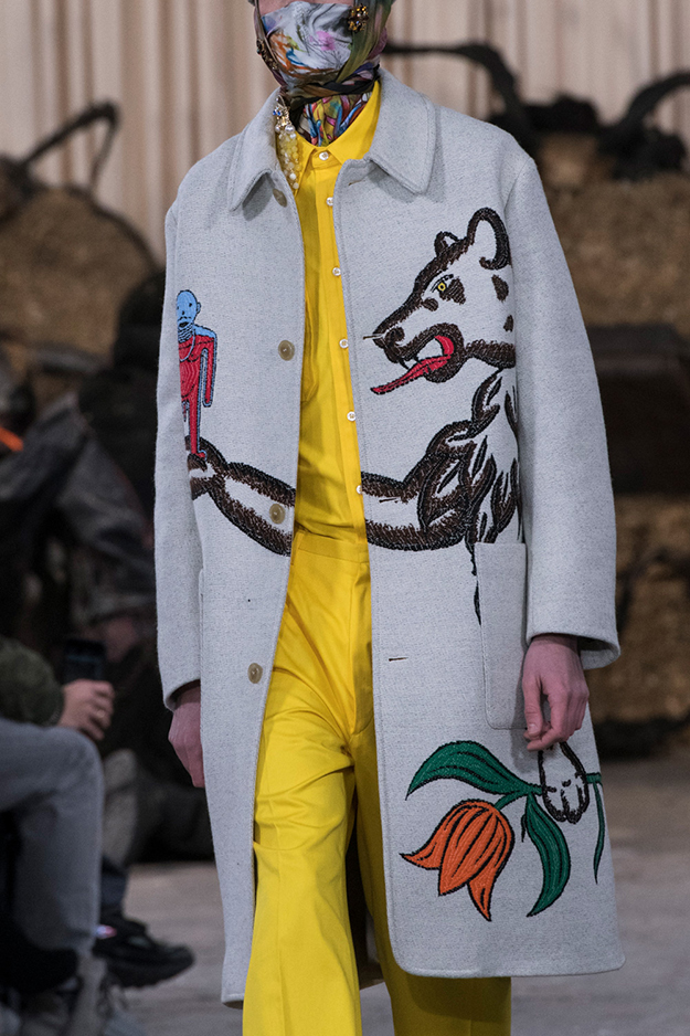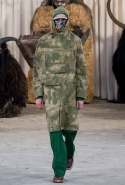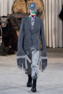 Группа рогатых чертей, одетых в соломенные стога стучат, дудят и бешено машут руками. Это не шабаш ведьм, а традиционный языческий обряд Тироля — Перхтенлауф, «Шествие призраков», изгнание демона мрачности и пессимизма из мужской моды, и это новый Вальтер Ван Берендонк. Хоть это представление фольклорной группы Seidä Pass и выглядит устрашающе, оно обязательно для начала нового года. Сами модели, похоже, тоже хотели отпугнуть все старое и надоевшее своим внешним видом — перемотанные платками лица и огромные лапы вместо перчаток... Но мы-то понимаем — это самый позитивный показ сезона.
