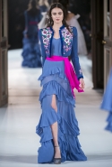 Детали костюмов матадора и балерины слились воедино в новой коллекции Yanina Couture. Нежные оттенки, цветочные принты, аппликации и вышивка, длинная бахрома, пышные рукава, юбки и жабо.