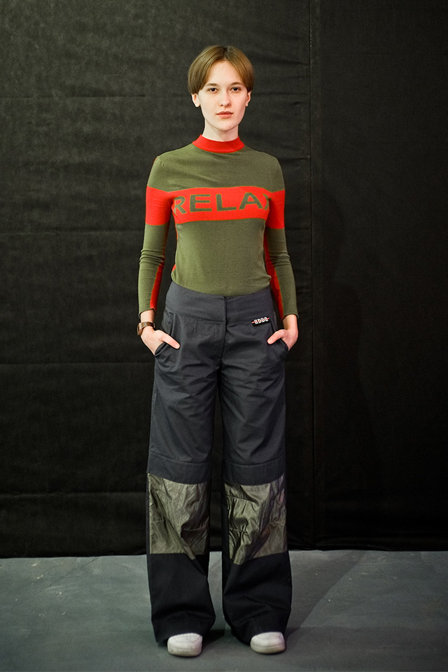 Даша Сельянова, петербурженка, окончившая Saint Martins и запустившая в Лондоне марку ZDDZ, давно входит в число наших любимиц. Ее спортивно-уличный бойкий стиль, броская графика и кричащие лозунги Москве подходят идеально: все яркие краски и идеи на сером московском фоне буквально расцветают. Но в новой коллекции Даша решила немного сбавить накал страстей — этот сезон пройдет под лозунгом RELAX. Кислотно-синий и ярко-красный, полосы дорожной разметки и заградительных лент с ядовитыми цветами, традиционными для спортивной одежды, уступили место глухим и темным тонам униформы. Вместо боксерских шортов, легинсов и коллажных платьев-рубашек в центре внимания оказались широкие рабочие брюки и расхлябанные куртки с чужого плеча.