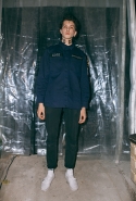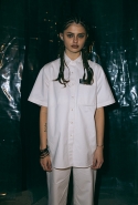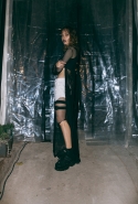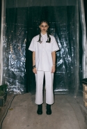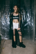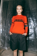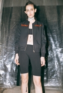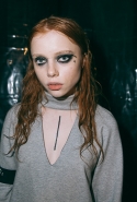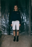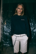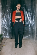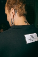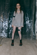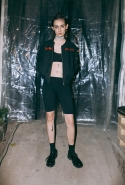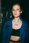 Свою историю Даша Сельянова продолжает рассказывать предельно буквально и через остальную одежду. Insecurity, Anxiety, Techno — все ключевые слова она прямым текстом прописывает на своих угловатых куртках и кроп-топах, чтобы донести идею коллекции до самого широкого круга. А с ткани летопись переползает и на тела моделей. «Нет», Never Again, Cold — все это похоже и на резкие подростковые манифесты, и на крики о помощи, и на просьбы о внимании. Вместе с надписями на коже оказываются и картинки, выглядящие как самопальные татуировки, набитые где-то у друга на квартире. Рисовала их Кейт Мур, визажист, работающая с независимыми журналами и марками, совсем не похожими на те, что устраивают свои показы в «Манеже» или «Метрополе». У Даши Сельяновой, по ее словам, тоже много татуировок, набитых как раз в самые тяжелые моменты жизни, — полос и засечек, напоминающих о том, каким ты был.