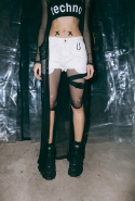 Все нарочито объемные, грубоватые вещи кажутся своеобразной броней, как бывают броней и агрессивный макияж, и кричащая сексуальность. Не дать им почувствовать твою уязвимость — быть сильным, быть круче. Прятать застенчивость за показной грубостью. Тело, которое не можешь принять, — за огромными куртками и мешковатыми брюками. Или, наоборот, подчеркивать то, что ты уже не ребенок, обтягивая себя сетками, надевая мини-юбки и кроп-топы. Узкие черные шорты до колена, копирующие униформу техно-клабберов, чокеры, рваный деним, криперы, цепи вместо поясов — все эти агрессивные образы только сильнее подчеркивают хрупкость и беззащитность перед огромным миром самой юности.