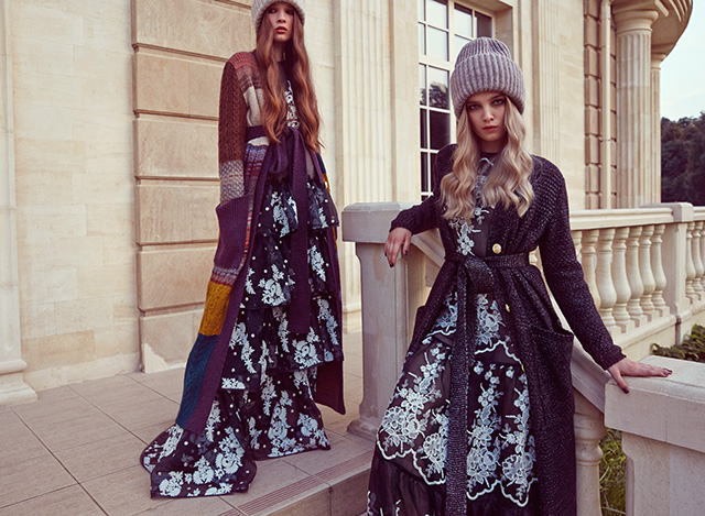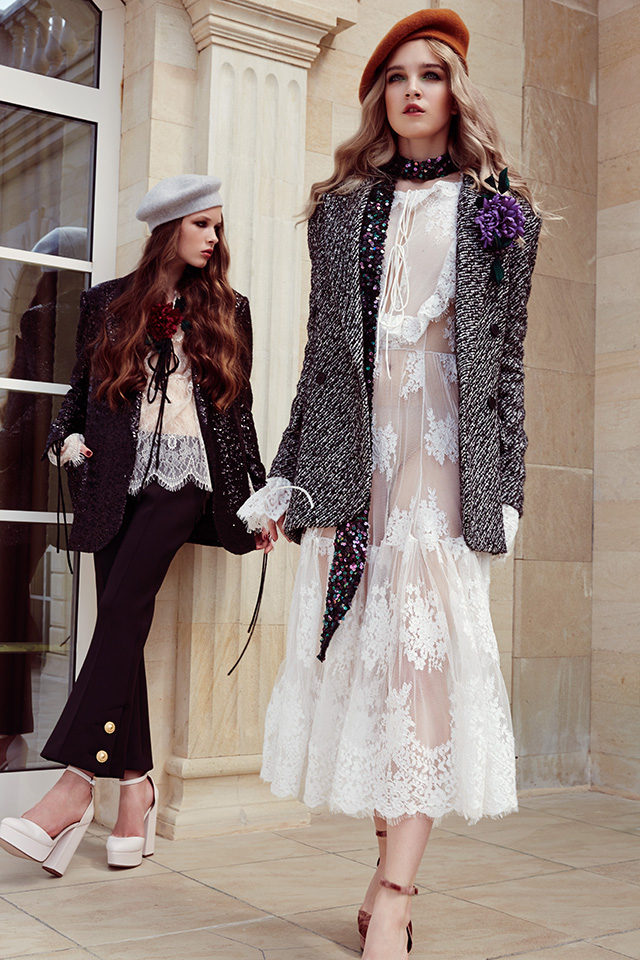 Дизайнеры марки остаются верными себе во всем — то есть по-прежнему не афишируют свои имена, ловко обходя этот вопрос в своих пресс-релизах, и не изменяют привычной роскоши, ставшей их главной темой с самой первой коллекции. Дорогие материалы, очевидная, но не вульгарная сексуальность, богатые вышивки и шитье — даже стразы, густые слои пайеток и леопардовый принт им удается заставить выглядеть броско, но очень по-своему. На этот раз дизайнеры уменьшили присутствие в коллекции только своего любимого черного цвета. Даже сияющие платья в пол, и без того яркие и уж точно заметные, выполнены не в одном черном, а в миксе фиолетового, зеленого, розового и даже желтого цветов.
