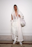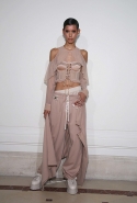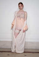 Если в прошлой коллекции были готические элементы и некая мрачность, то нынешняя – воздушная, пастельная и даже кокетливая. Все это благодаря огромному количеству лент и прозрачных тканей в преимущественно бледно-розовых тонах.