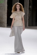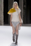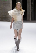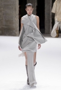 В своих работах Рик Оуэнс часто затрагивает такие противоположные понятия, как опытность и невинность. Дизайнер признал, что в этом сезоне именно невинности он уделил больше внимания и почти полностью отказался от тех мрачных готических конструкций, которые сделали его знаменитым.
