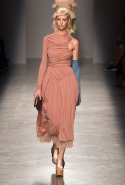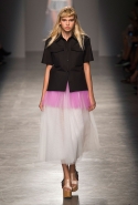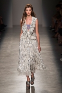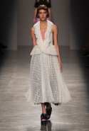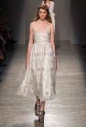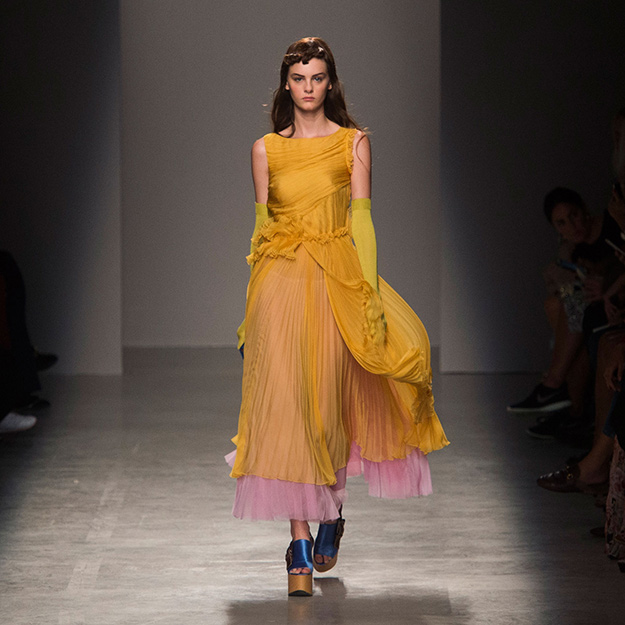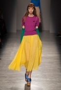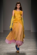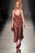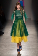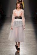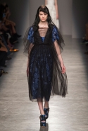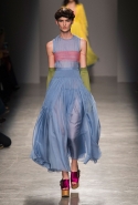 За четыре года в Rochas дизайнер выработал определенную эстетику. В новой коллекции есть все ее приметы: высокая линия талии, пышные многослойные юбки до середины икры, а также приглушенные пастельные оттенки, полупрозрачные ткани, оборки и банты, мелкий цветочный рисунок и обувь на неизменно высокой платформе. Одним словом, постоянство — признак не только качества, но и сформировавшегося стиля, а с этим у Дель Аквы проблем нет.