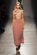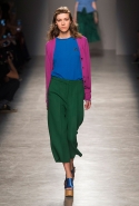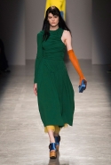 На смену длинным цветным гольфам (важная деталь прошлой подиумной коллекции) пришли длинные цветные перчатки. В этом показе прием color blocking показался ключевым, но напомнил прошлую коллекцию Рафа Симонса для Dior, построенную почти на тех же оттенках.