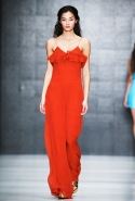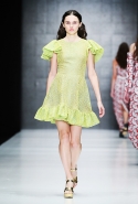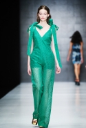 Признаем: мы, кажется, застряли в 70-х. Дело не в неудачном использовании кем-то изобретенной машины времени, а в том, что отпустить давно ушедшее десятилетие никак не могут модные дизайнеры. Казалось бы, после нескольких сезонов в моду снова вернулись 80-е с 90-ми, но некоторые по-прежнему не хотят прощаться с романтикой предшествовавшего им периода. К числу этих некоторых относится и украинка Яся Миночкина. По словам Яси, она прониклась 70-ми во время командировки во Францию, наткнувшись в одном из местных книжных на Fashion in the ‘70s: The Definitive Sourcebook Эмманюэль Дири. Так что комбинезоны в пол, воздушные платья, брюки клеш и прочие узнаваемые атрибуты десятилетия снова вернулись на подиум. И здесь можно было бы грустно вздохнуть, потому что отчаянно хочется двигаться дальше, но грустить совершенно не хочется. Украинка все-таки остается верна своей концепции городской и очень современной одежды в самых сочных красках. Здесь, может быть, нет каких-то поражающих воображение дизайнерских решений, зато есть что-то вроде драйва — все это бодро, бойко, ярко и поэтому уж точно не скучно.