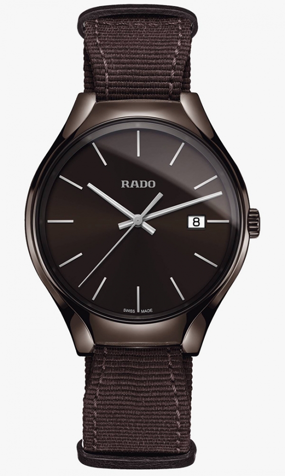 Часы коллекции True Colours Rado представил в этом году в Базеле. Именно они первыми продемонстрировали обновленную палитру цветов. Новые модели выполнены из керамики и дополнены ремешками Nato, теми, что сконструированы по образцу часовых браслетов солдат военно-морского флота Британии. Корпус часов может быть выполнен в одном из четырех цветов: шоколадном, сером, синем и зеленом. Ремешки также дублируют выбранный оттенок.