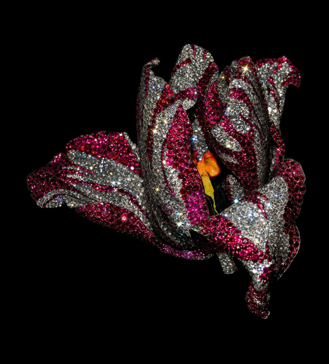 Основной и любимый мотив украшений Розенталя — природный, поэтому экспозиция очень напоминает оранжерею с бабочками и цветами. В Метрополитен-музее, разумеется, можно будет увидеть все: от знаменитой броши JAR в виде бабочки, украшенной сапфирами, огненными опалами, рубинами, аметистами и бриллиантами до современных сережек с изумрудами и жемчугом.