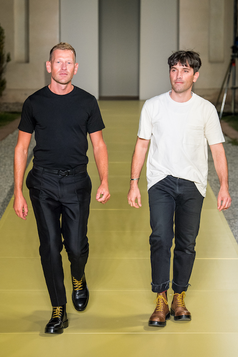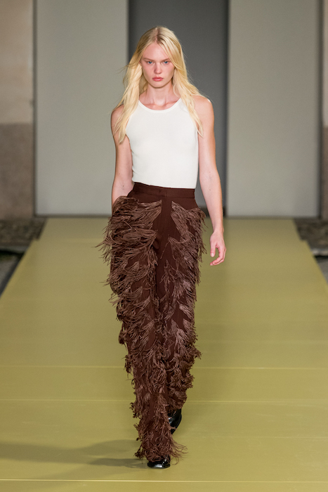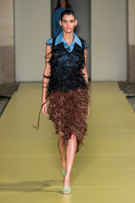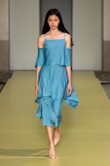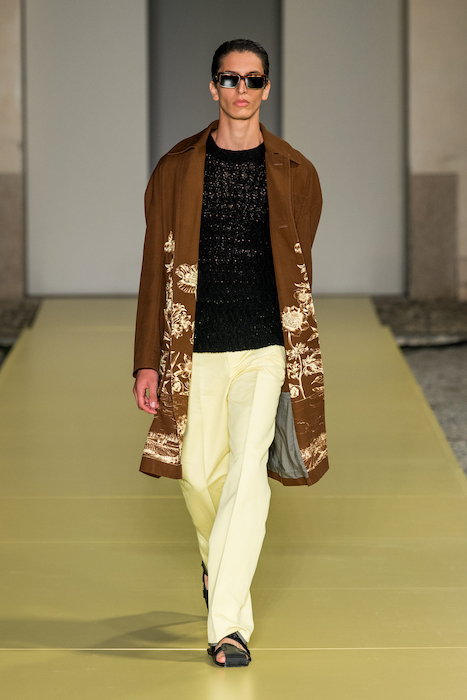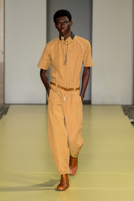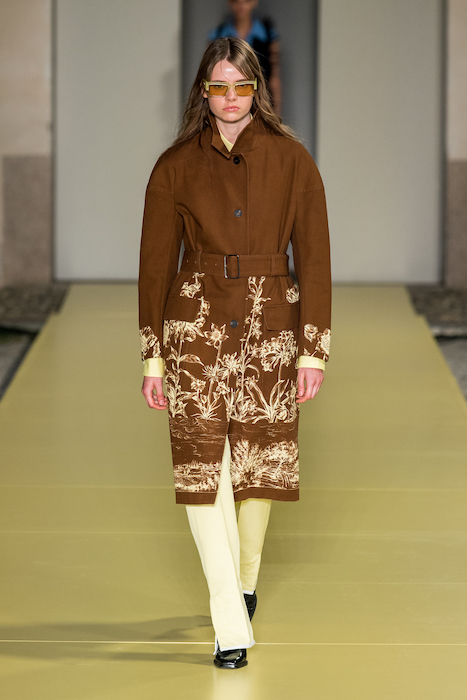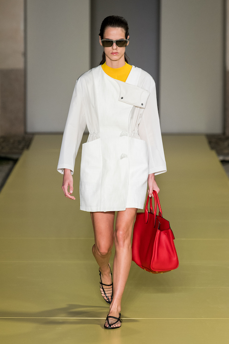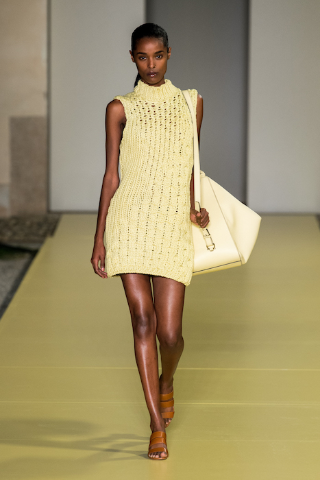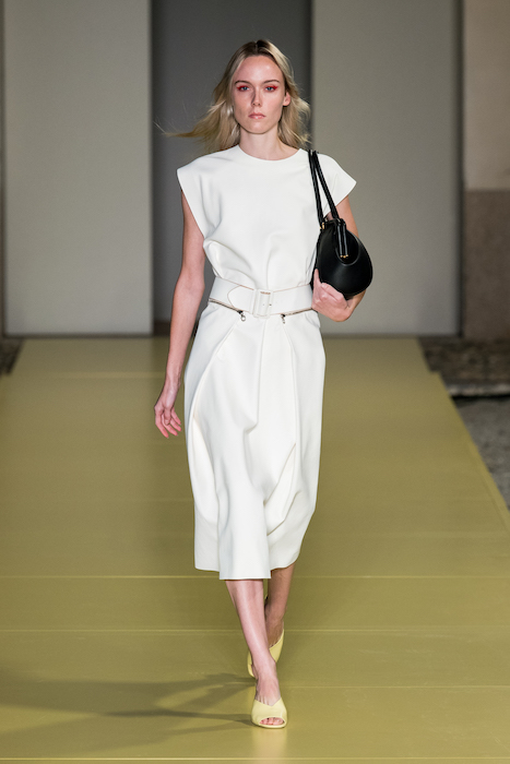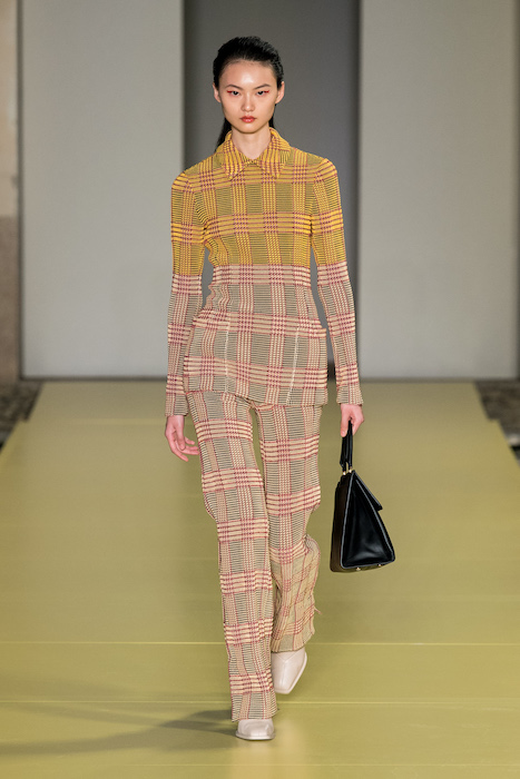 На неделе моды в Милане марка Salvatore Ferragamo охватила два формата, онлайн и офлайн. Бренд представил мини-фильм, который сделал Лука Гуаданьино, а затем провёл физический показ. Креативный директор марки Пол Эндрю говорит, что сейчас людям не нужна сложная одежда — «сейчас вообще не нужно ничего усложнять». Поэтому его новая коллекция строится на чистых линиях. Костюмы с юбками до колена, плащи с защитным воротником, комбинезоны и трикотажные платья — все эти вещи сделаны из природных материалов. Даже нарядные образы в коллекции выглядят максимально уютно — речь о юбках из струящегося шелка и клетчатой комбинации с отворотом (будто модель завернулась в плед).