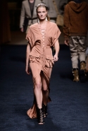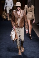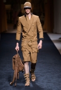 Повсюду оттенки песка и хаки, накладные карманы, заклепки, ремни, сандалии-гладиаторы и в целом крайне воинственный настрой. Сафари получило у Рустена двойное прочтение: с одной стороны, это колониальная эстетика, которую поддержали в том числе и принты в виде флага Великобритании, с другой — это охота на диких животных, воплощенная в анималистичных узорах, использованных дизайнером в нескольких выходах.