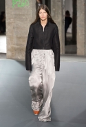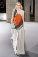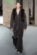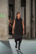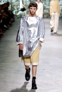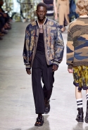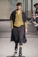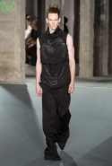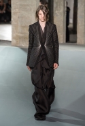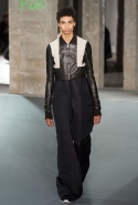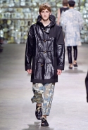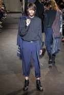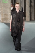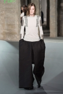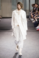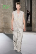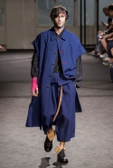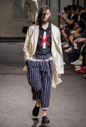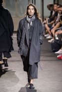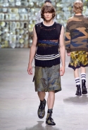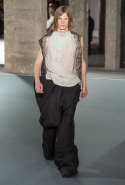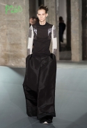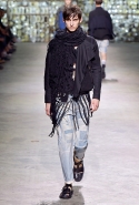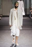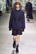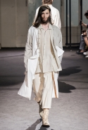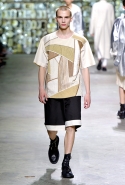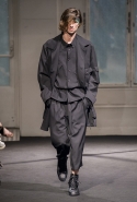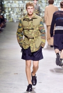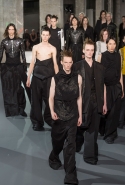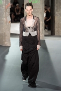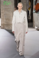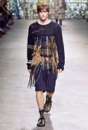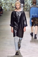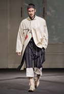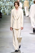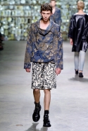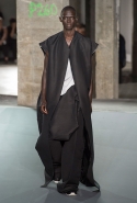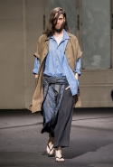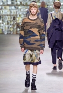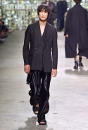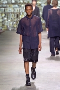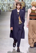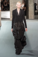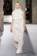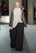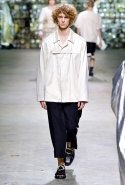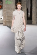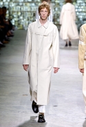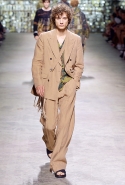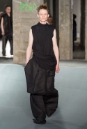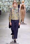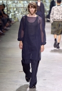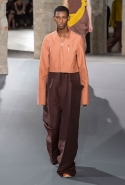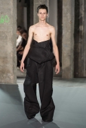 В этом сезоне, как говорит сам Оуэнс, он вновь решил взяться за «мягкую» сторону характера своих героев. И эта коллекция — очередное размышление дизайнера на тему традиционной мужественности, сдавшей свои позиции, ранимости и чуткости, которые по-прежнему считаются качествами, настоящему мужчине не присущие. Отсюда на подиуме и драпировки, складывающиеся в объемные «подушечные» топы (почти тоги), и брюки с пышными оборками на поясах, и добавленные объемы на бедрах, любому предмету одежды придающие сходство с кринолином, и чересчур тесные «верхи» с чересчур просторными «низами» — это, как легко догадаться, отсылка к женскому платью прошлых столетий, корсетам и образам трепетных дев, готовых в любой момент упасть в обморок.