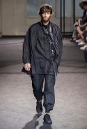 Многослойность и отвага — именно эти слова мы поставили бы в подзаголовок материала о новой коллекции Yohji Yamamoto, если бы формат этого материала требовал бы подзаголовка. Необходимости такой, впрочем, нет, но всю суть нового сезона это сочетание по-прежнему объясняет очень точно. Дизайнер продолжает бороться со всем рутинным и однообразным, воплощением этих ужасов объявляя строгий офисный костюм. Брюки, пиджак, рубашка, галстук, носки, начищенные ботинки — как же это все скучно!