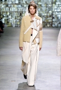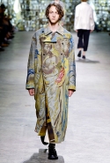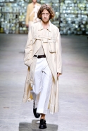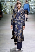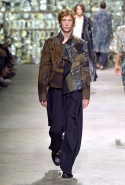 Еще один сезон Дрис Ван Нотен решил провести без пестроты, а со спокойствием и даже некоторой романтичностью — конечно, без бантов Микеле и проих совсем уж очевидных вещей. Растительные принты, правда, были, но и они больше напоминали фрагменты с живописных полотен, чем цветочные обои или иделлических картинки из деревенской жизни. Очень органично вписались в используемый набор визуальных образов и камуфляжные защитные пятна. Они не рушат общую романтичность неожиданным вторжением милитари, а, наоборот, становятся прекрасным продолжением темы.