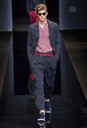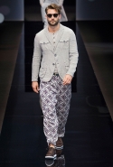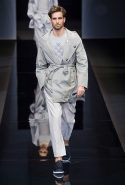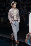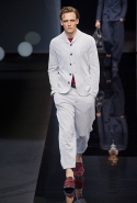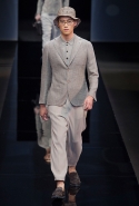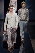 Если коллекции Эди Слимана невозможно представить без брюк настолько узких, что среднестатистический человек не втиснет в них даже руку, то коллекции Джорджо Армани — без, наоборот, широких. Именно такие еще в прошлом сезоне стали главной мужской вещью, потеснив конкурентов. Следующей весной это звание они потеряют, но все же по-прежнему останутся важным игроком во всех гардеробах. Самые разные можно, как всегда, найти у Giorgio Armani. И настроение у них, как и у всей коллекции, на этот раз более чем расслабленное. Штаны-бананы, сужающиеся книзу, например, так широки и покрыты принтом так густо, что напоминают восточные шаровары. А некоторые — «низы» от пижам, причем купленных для человека на много размеров больше нынешнего владельца.