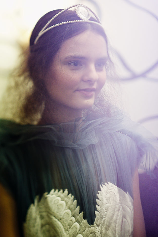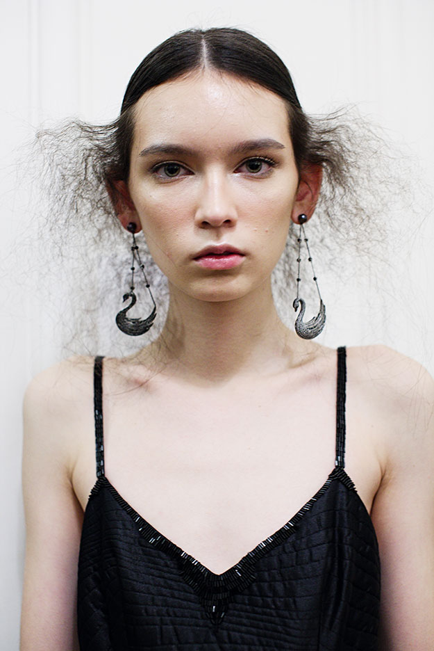 Зал украшала пятиметровая скульптура лебедя, а модели выходили на подиум из нарисованного (в полную величину) занавеса. Название коллекции — «Истории лебедя». Показ был подготовлен совместно с ювелиром Петром Аксеновым, который представил новую коллекцию Axenoff Jewellery – «The Swan Fairytales».