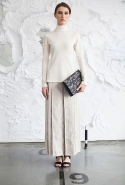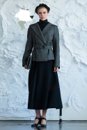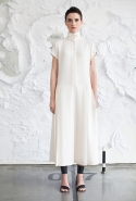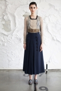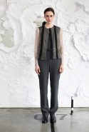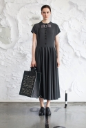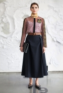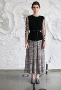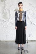 Хотя наука по традиции все же считается уделом людей серьезных, сосредоточенных и занудных или, в качестве альтернативы, безумных и вечно всклокоченных, дизайнеры все же находят в ней вдохновение. Обычно в стерильности лабораторий и сопутствующей им униформе. Эти же мотивы стали основными и в осенне-зимней коллекции Татьяны Парфеновой с говорящим названием «Формула». А в целом к минималистичным вещам, которые подошли бы любой женщине-ученой прошлого века, добавляются еще и более прямолинейные детали. Например, графики и формулы, в разных сочетаниях и конфигурациях появляющиеся и на объемных сумках-пакетах, и на длинных пышных юбках, и на рубашках, и на жакетах. Их команда петербургского дома даже вышила на полупрозрачных черных рукавах. А на других вещах появились изображения объемных геометрических фигур.