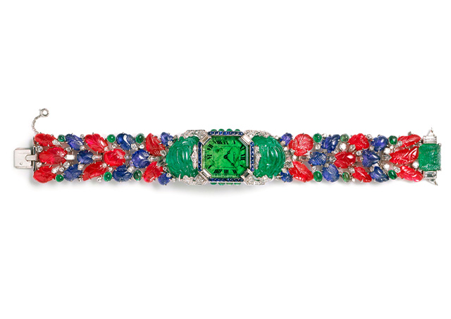 Одними из первых присматриваться к потрясающей красоты драгоценным камням и золоту Индии стали мастера дома Cartier. Цветочные мотивы, витиеватые узоры и пышные формы они начали передавать в своих серьгах, браслетах и часах. Позже этот стиль получил название Tutti Frutti. Его воплощением стали взрывные, яркие сочетания узоров в виде листьев экзотических цветов, фруктовых и пальмовых деревьев, ослепительных изумрудов, рубинов и сапфиров специфической резной огранки.