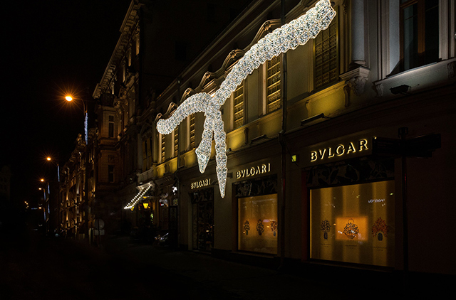 Римские каникулы теперь можно провести, не покидая пределов Москвы, а точнее Садового кольца. Флагманский бутик Bulgari — настоящий римский палаццо с белым мрамором, неизменной восьмиконечной звездой Condotti из красного порфира, люстрой из муранского стекла, а также декоративной решеткой, которая внешне походит на узоры, использованные в интерьере флагмана бренда в Риме. Концепт бутика, по традиции, вновь доверили архитектору Питеру Марино, который в 2014 году в честь 130-летия Bulgari отреставрировал исторический магазин марки на виа деи Кондотти, 10, а в 2015 году — разработал интерьеры и оформление для бутика в ГУМе.