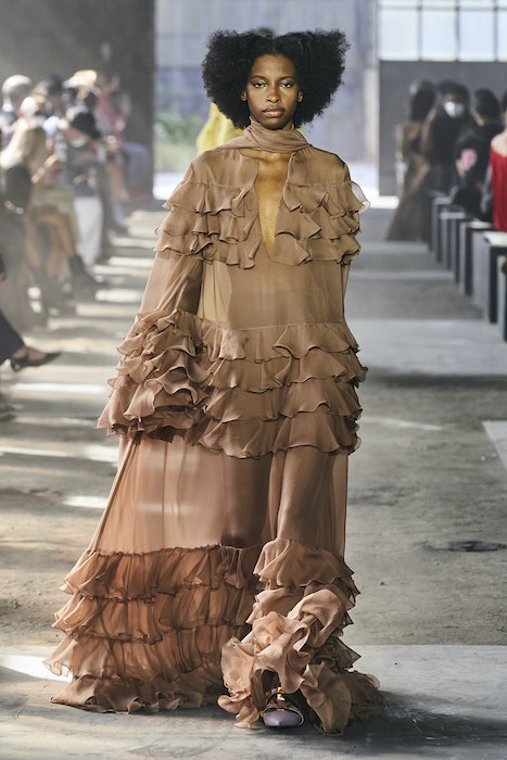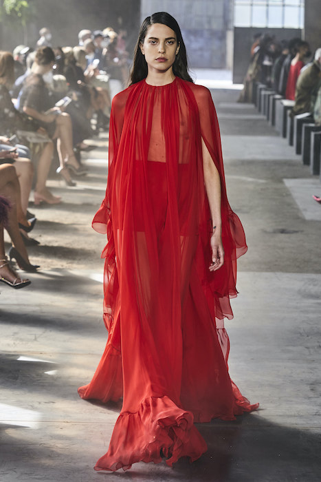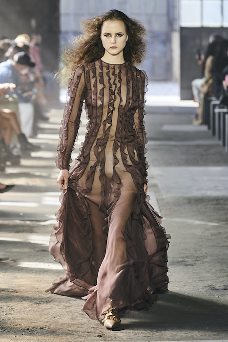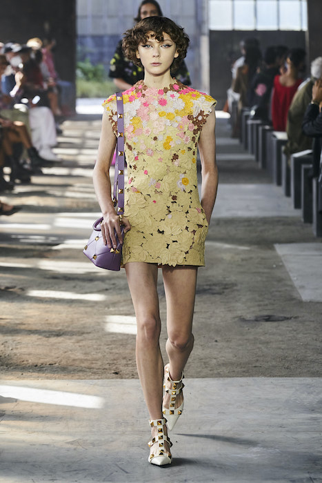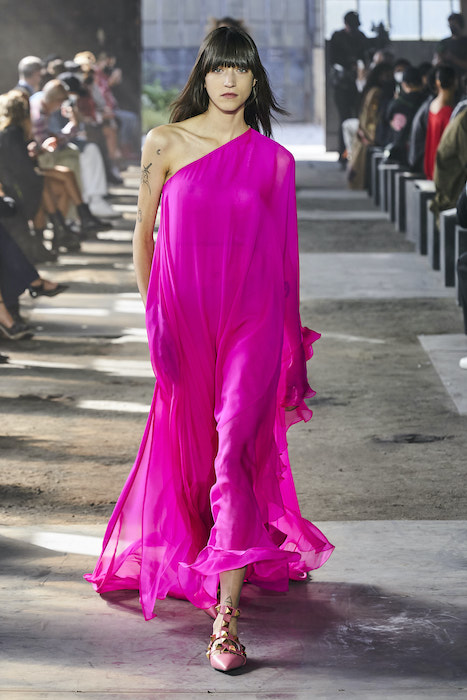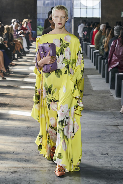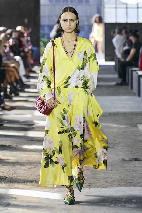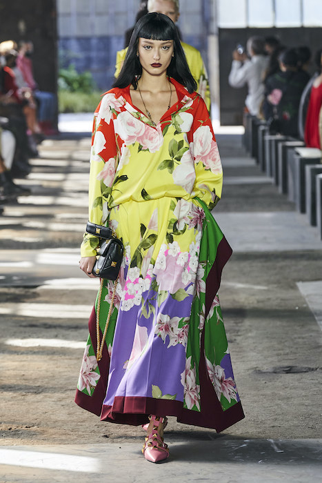 Valentino проводил свои показы на Парижской неделе моды, но в этом сезоне бренд устроил шоу в Милане. По словам гендиректора марки, решение о переносе принято, чтобы поддержать итальянскую моду и сотрудников индустрии. Все-таки индустрия моды в Италии — вторая по величине для национальной экономики. Шоу прошло на литейном заводе, который наполнили живым цветами. Креативный директор Valentino Пьерпаоло Пиччоли в заметках к показу рассказал, что Fonderia Macchi — один из тех символов Милана, которые сделали Италию великой и дали возможность Милану называться городом инноваций: «Видеть, как фабрика наполняется красотой — это счастье для меня и для моей команды».