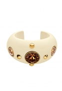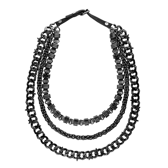Все подиумные аксессуары сделаны в черном или в очень темных цветах: и сумки, и сапожки на плоской подошве, и сандалии, и украшения. Браслеты, пояса, ожерелья и даже подвески также выполнены в темной эстетике: они напоминают наручники, ошейники и кандалы. Зато остальные аксессуары компенсируют их мрачность яркими цветами и красочными принтами: здесь и абстрактные разводы, и карта Млечного пути, и просто жизнерадостный цветной леопард.