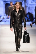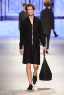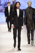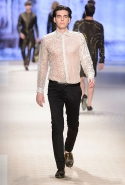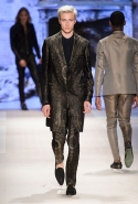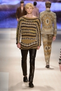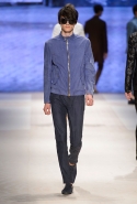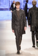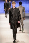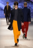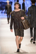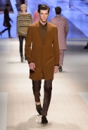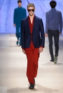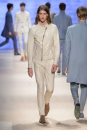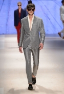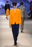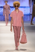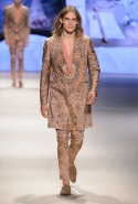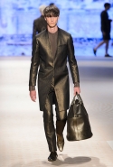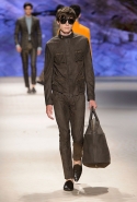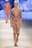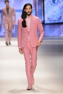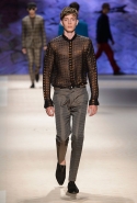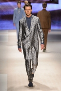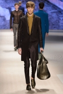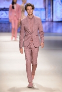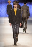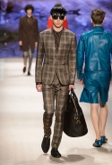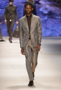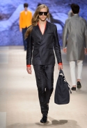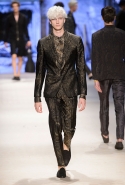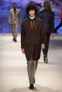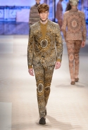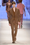 Нежно-розовые и голубые тона, мужские костюмы из нежных, «женственных» материалов, плавные линии и полупрозрачные ткани для рубашек — к разговору о мужском и женском семья Этро подходит достаточно буквально. Здесь, правда, нет совсем уж очевидных вещей вроде кружевных блуз с бантами в духе нового Gucci. Взамен мужчинам достаются по-прежнему легкие цыганские рубашки — вместо кружева семья Этро предпочитает просвечивающие легкие ткани с поблескивающими polka dots или позолоченными квадратиками. Не отказывается Etro и от своих фирменных «племенных» принтов, раскрашивая привычные турецкие огурцы теми же пастельными тонами — от светло-коричневого до совсем конфетных оттенков.